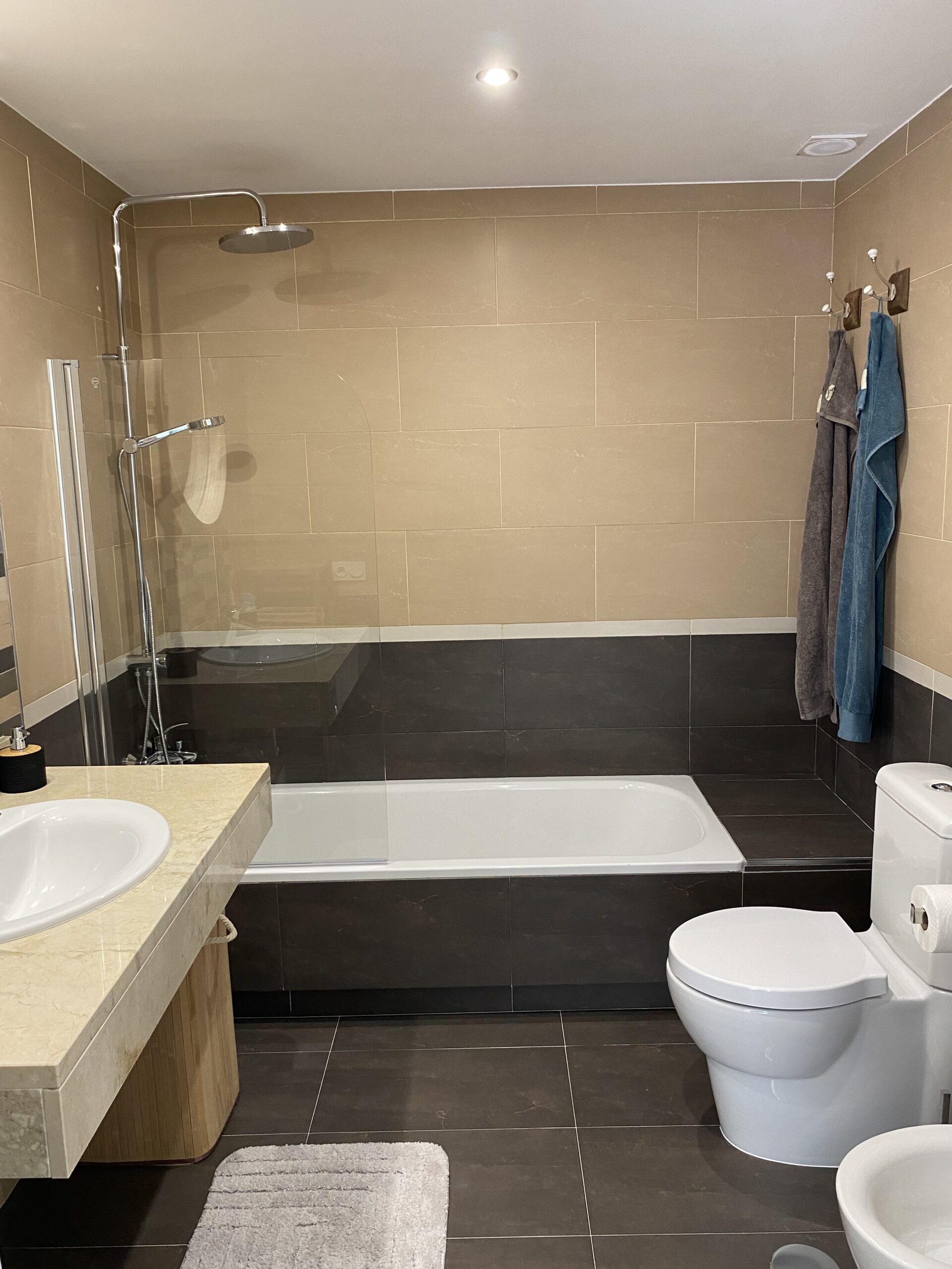 The modern kitchen is fully equipped with high-quality appliances and offers everything you need for a comfortable stay. The two bedrooms are generously sized, both with en-suite bathrooms and spacious fitted wardrobes.
